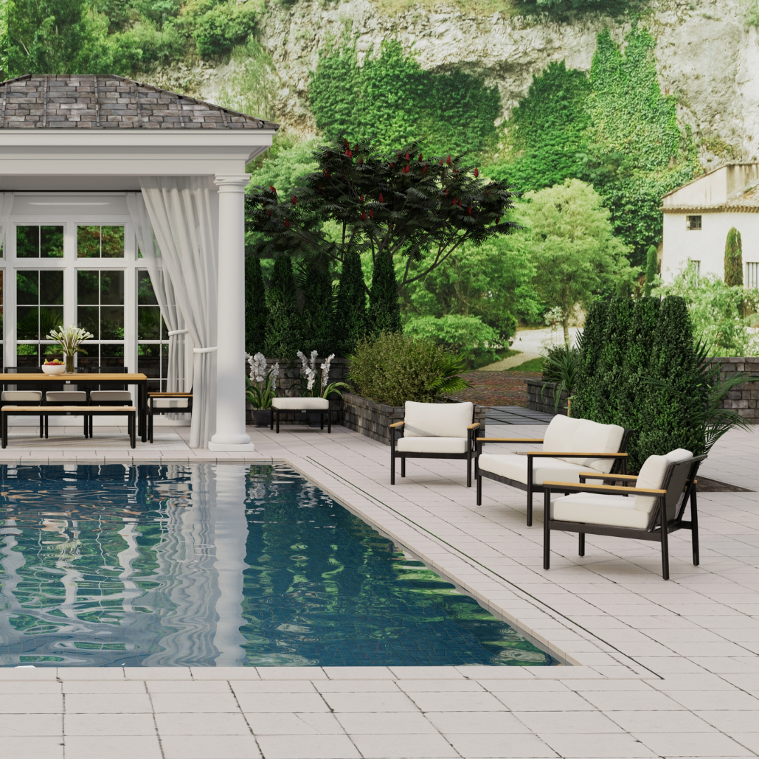 Whether paired with a lounge chair or used as extra seating, its streamlined design and weather-ready materials make it an essential outdoor piece